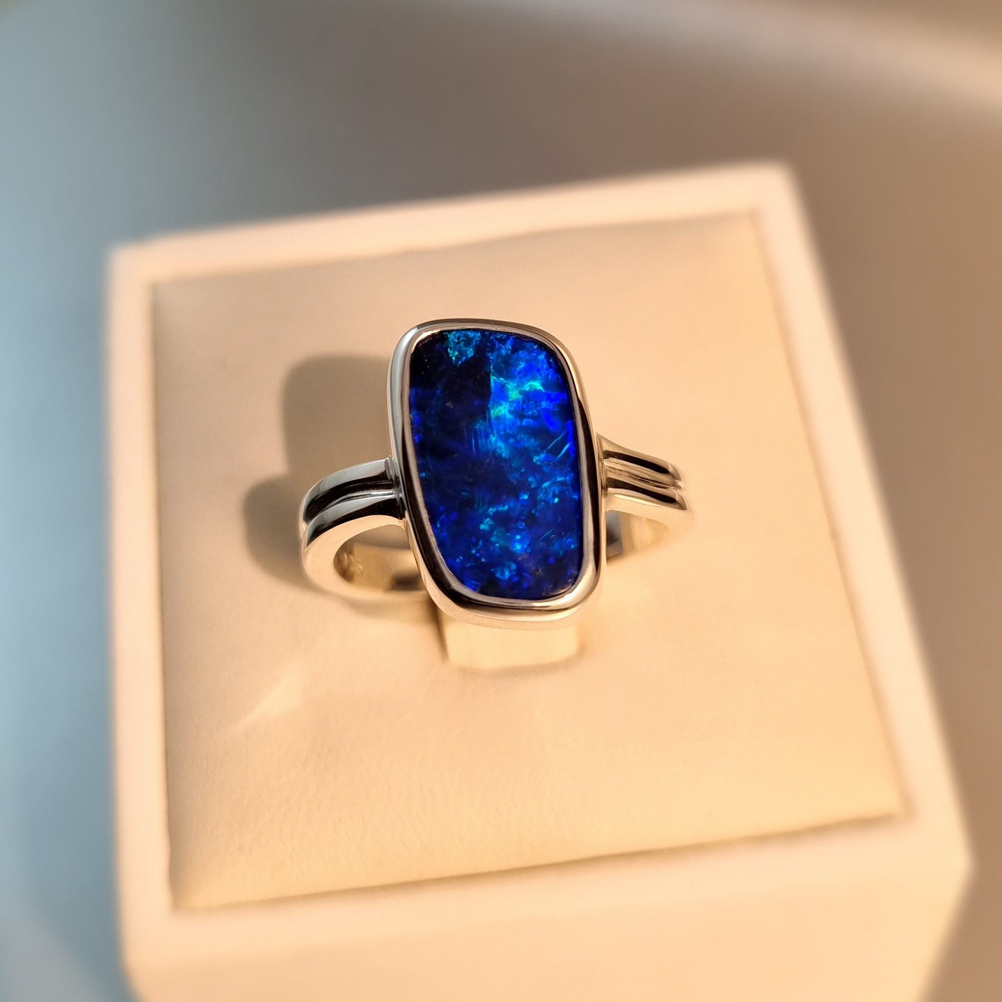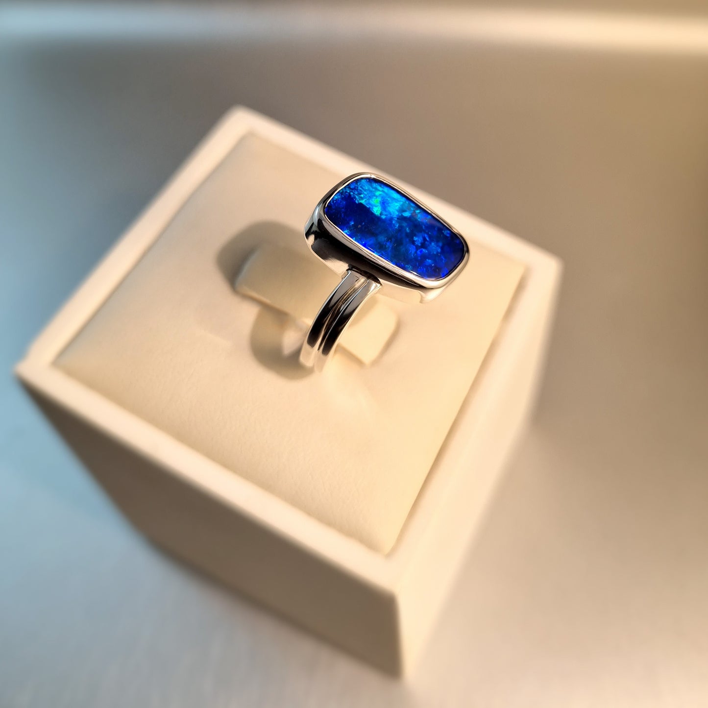 Coober Pedy opal doublet, bezel set in a handmade sterling silver ring.